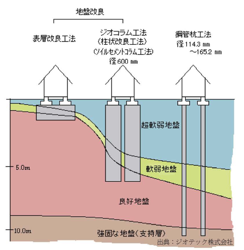 他にも【表層改良法】や【鋼管杭工法】などがありますが、戸建住宅で主に行われているのはこの三種類でしょうか。
