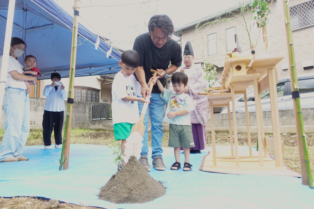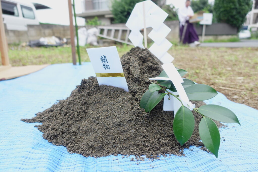 地鎮祭とは、建物の工事が始まる前に、その土地の神様に工事の無事と家族の繁栄を祈願する儀式です。最近では省略されるお家も多いようで、弊社のようにほぼ100%の方が行っている会社は珍しいそうです。