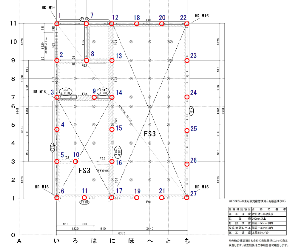 私が行ったのは【柱状改良】といって、地中に穴を空けながら土とセメント流し込んでを撹拌し、地中に円柱状の杭を造る工法になります。
