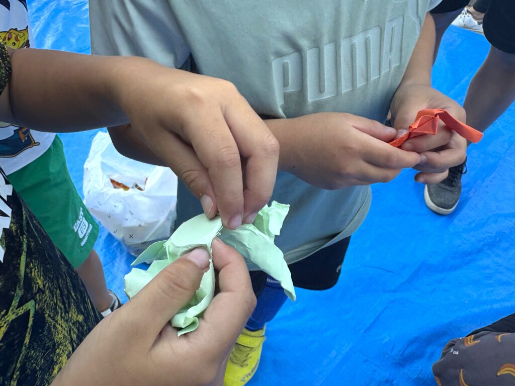 子ども同士で声を架け合いながら、材料をトントンと叩いたり、子ども達の一生懸命なお仕事風景がとても可愛らしかったです♪
