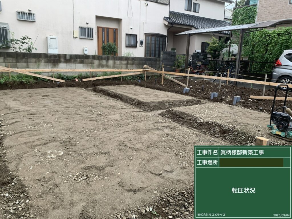 • 砕石敷き: 掘った部分に細かく砕いた石を敷き詰め、機械で転圧(締固め)して地盤を強固にします。
