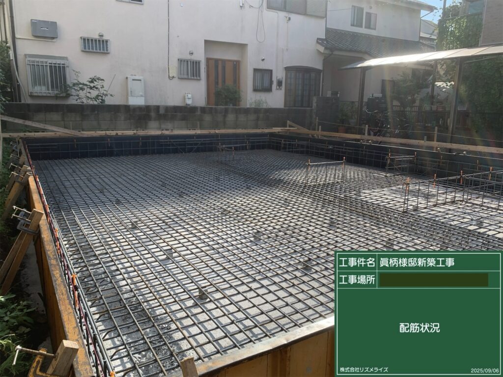 組み終わった後、第三者機関による「配筋検査」が行われ、鉄筋の太さや間隔がチェックされます。