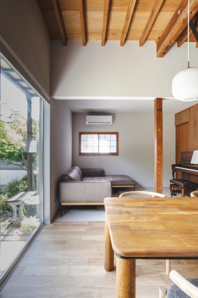 新しいものと、変わらずに残る木部の組み合わせが美しい空間を作り出します。