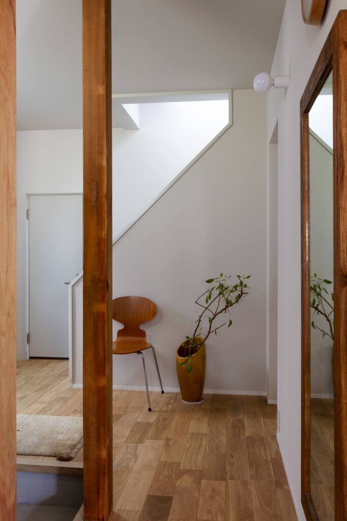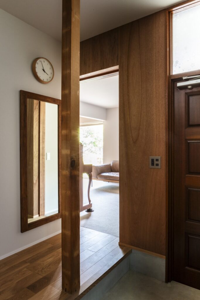 • 玄関では、既存の和室の壁を柱のみ残すことで、床面積が広くゆとりのある空間になりました。