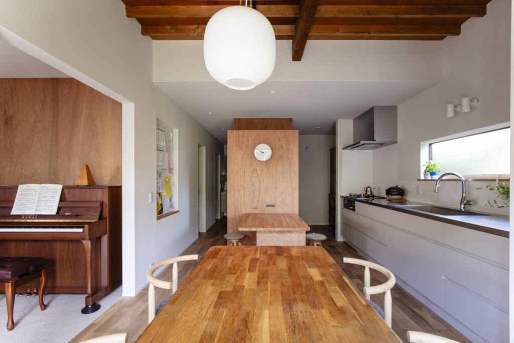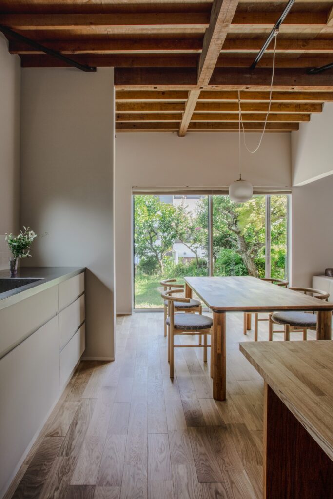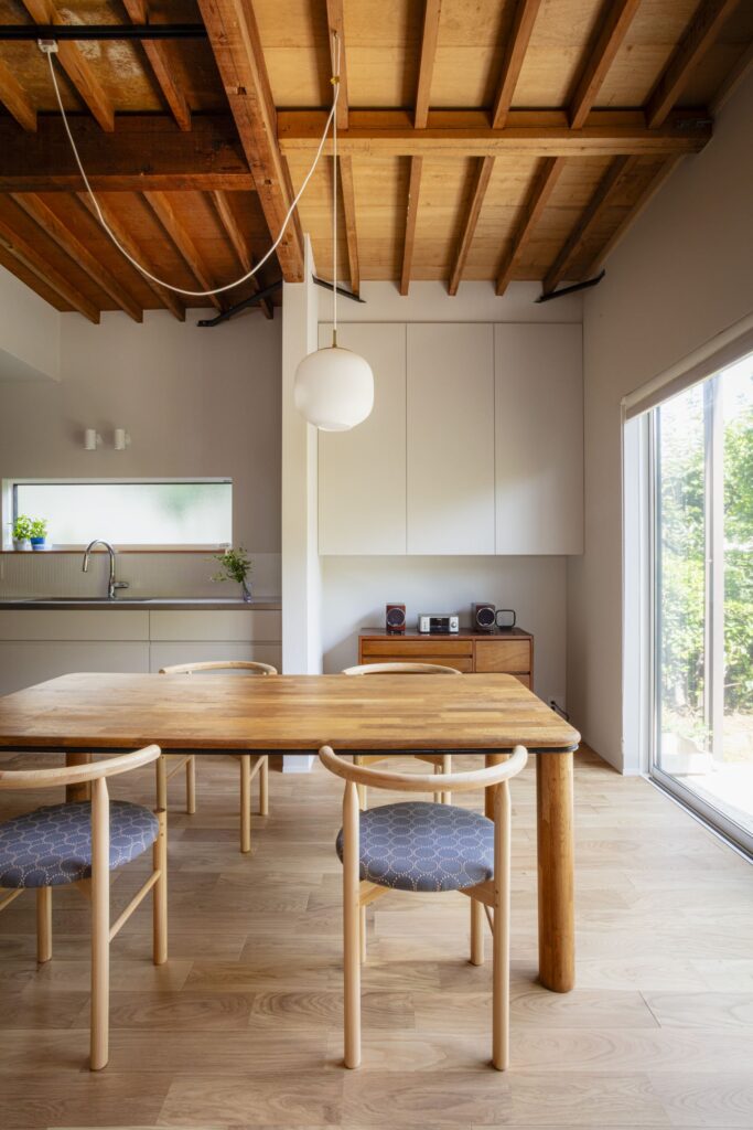 • 天井は既存の構造現しで階高が上がり、明るいダイニングがより開放的な空間に。