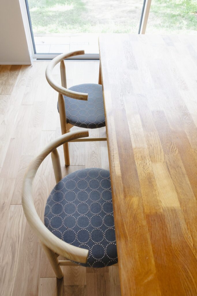 • ダイニングテーブルはお施主様が大切にお使いだったものを、研磨して再塗装しました。