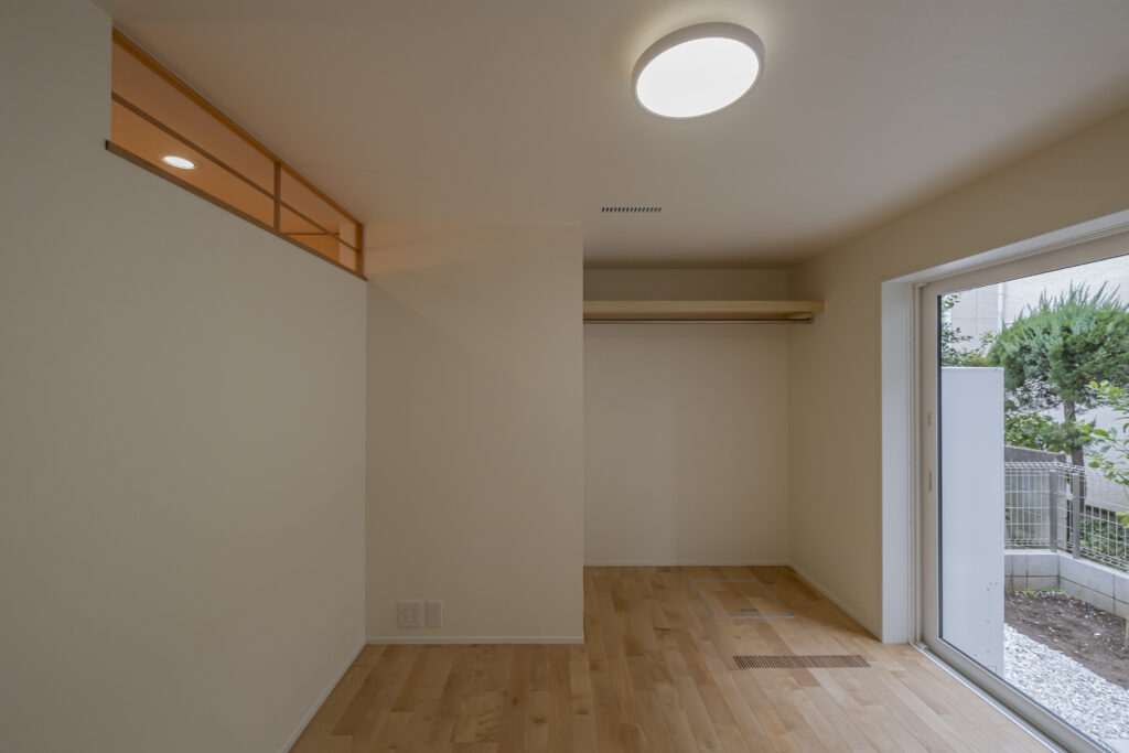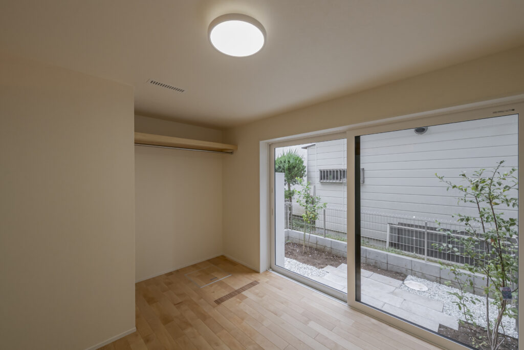 寝室はお庭に面しており、大きな窓から陽をたっぷり取り込んだ明るいお部屋です。