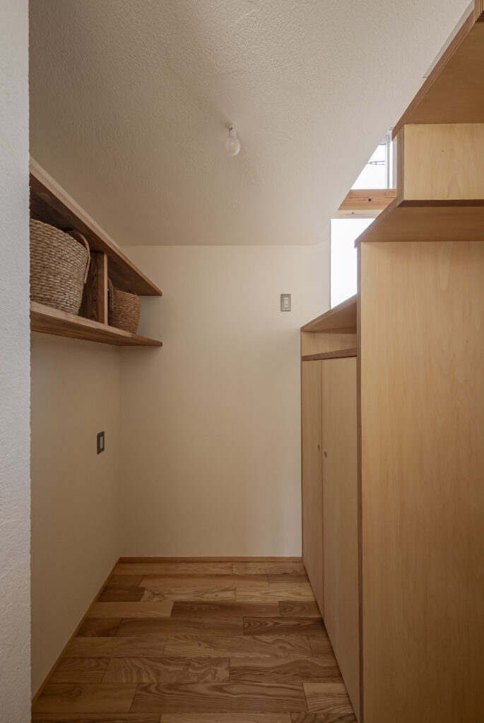 無垢の床のぬくもりと、漆喰のやわらかな質感。自然素材の中で穏やかな暮らしを愉しむ住まいです。