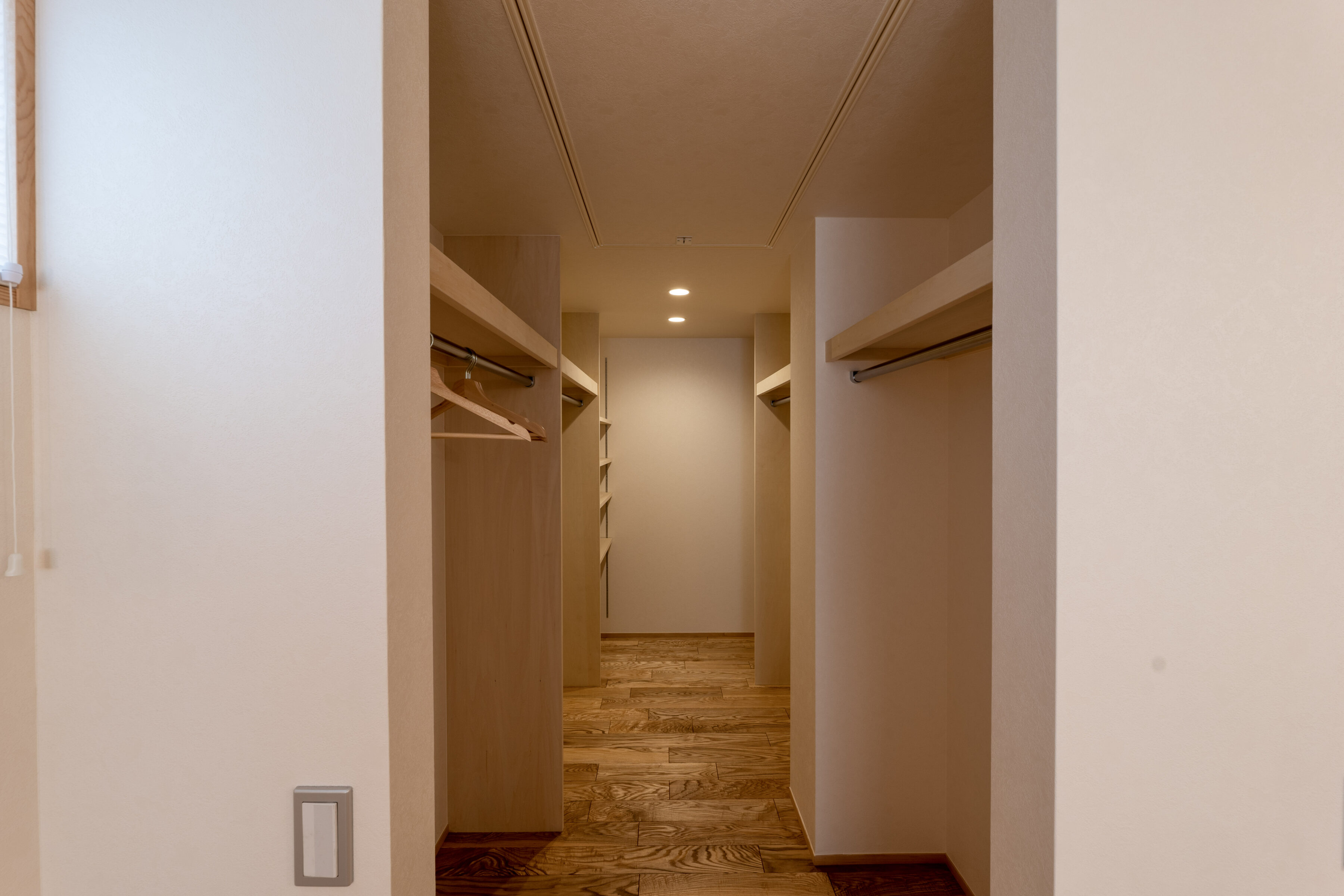 • ウォークインクローゼットは家族で使用出来るゆとりの広さ。廊下側からもアクセスが出来ます。