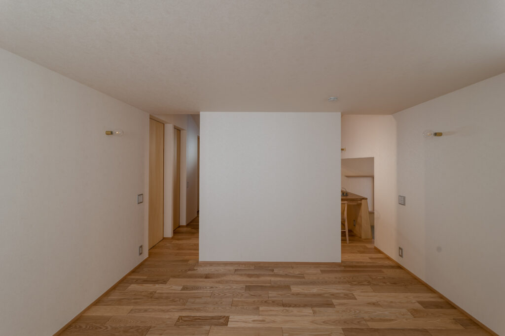 床は北海道産タモ、壁と天井は調湿性の高い珪藻土で仕上げています。