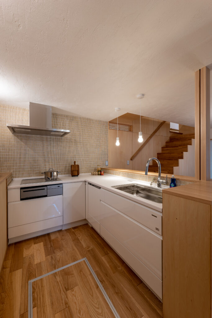 • キッチンはカウンターからはダイニング、テラスへと視線が抜けてゆきます。玄関のすぐ先にあり、帰宅する家族をいつも出迎えることの出来る場所です。