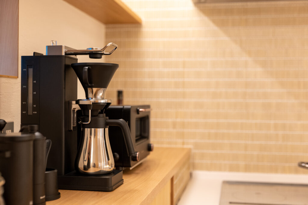 コンロ側の壁面と腰壁に貼ったモザイクタイルは機能性とともに、温かみのある色味の釉薬のタイルが空間に色を添えてくれます。