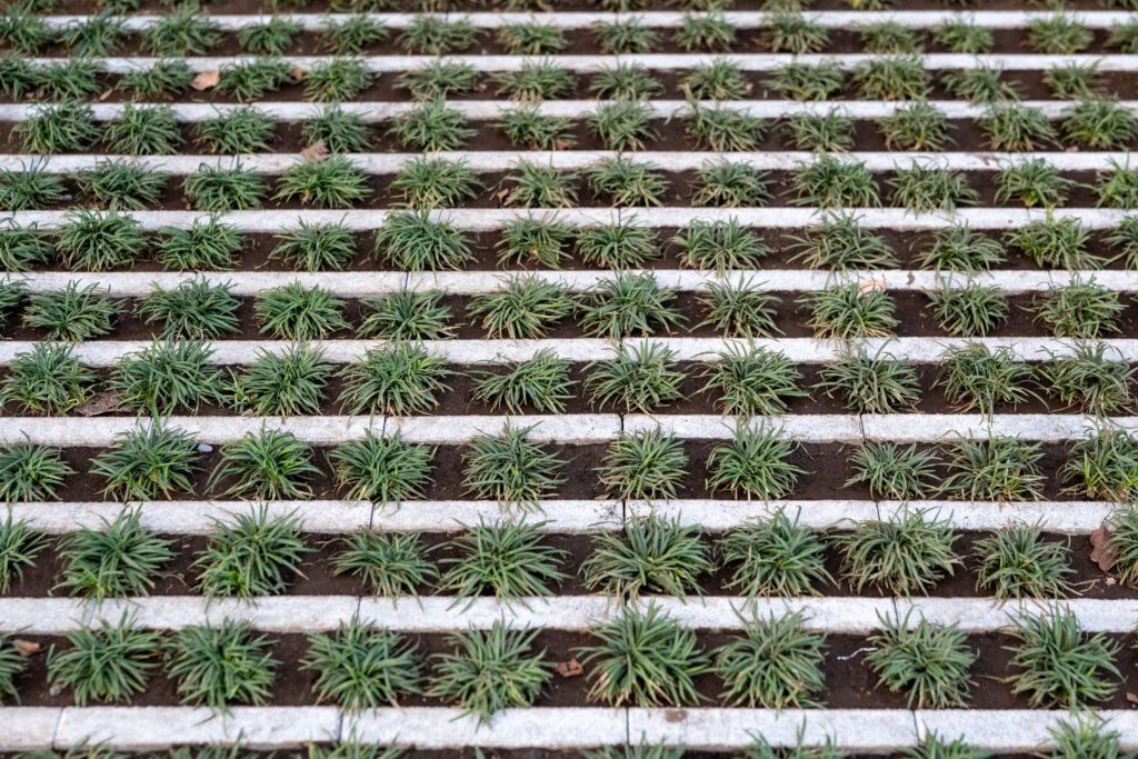 • 駐車スペースには緑化ブロックを敷き込み。地面からの熱の照り返しにも有効です。