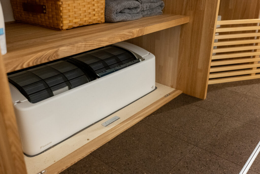 • ガス衣類乾燥機の下部には床下エアコンが設置されており、ガラリを通して家中に暖気を送ります。